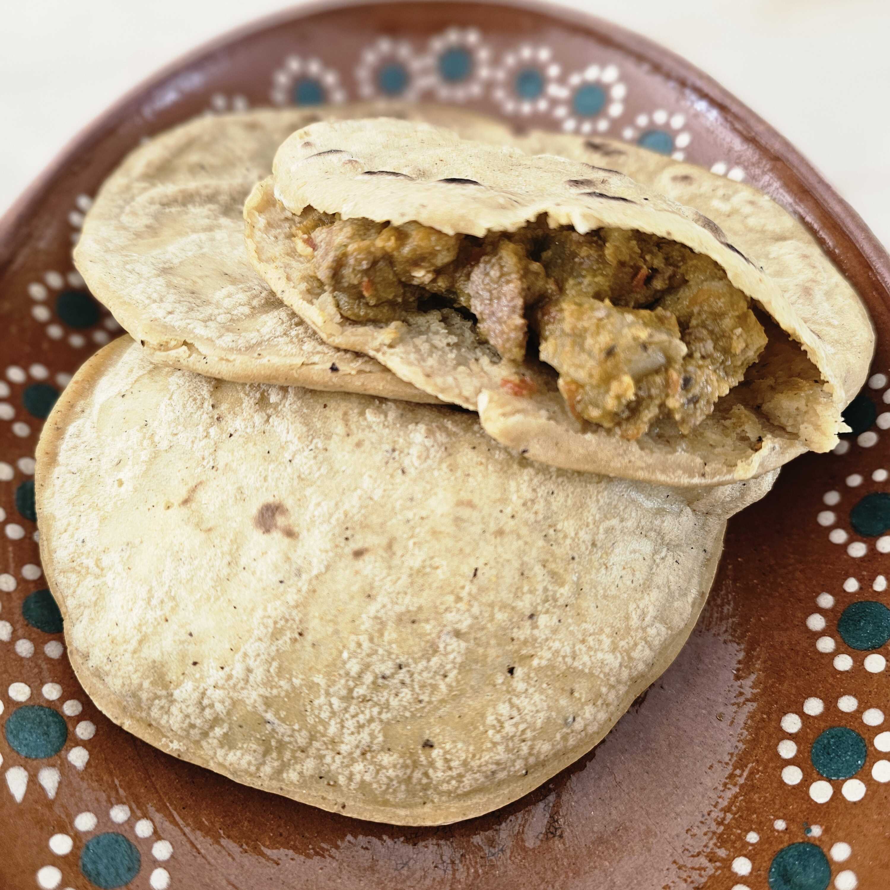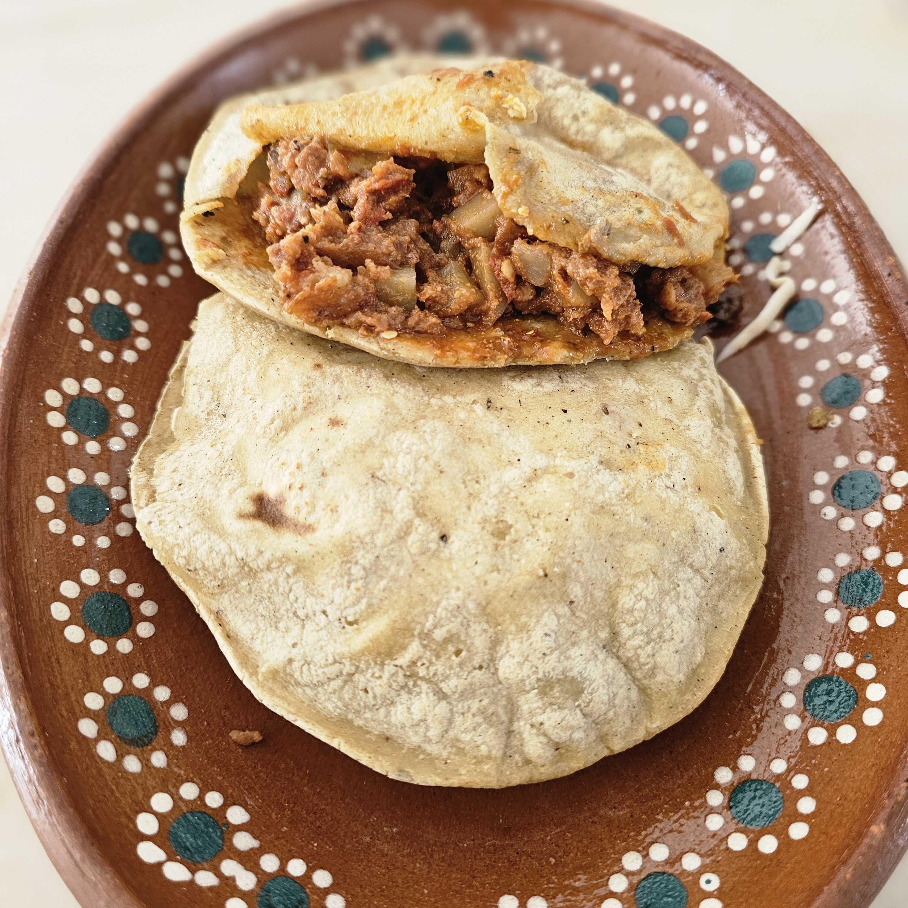 15cm Aprox. Carne de res condimentada con especias, chile, tomate y cebolla