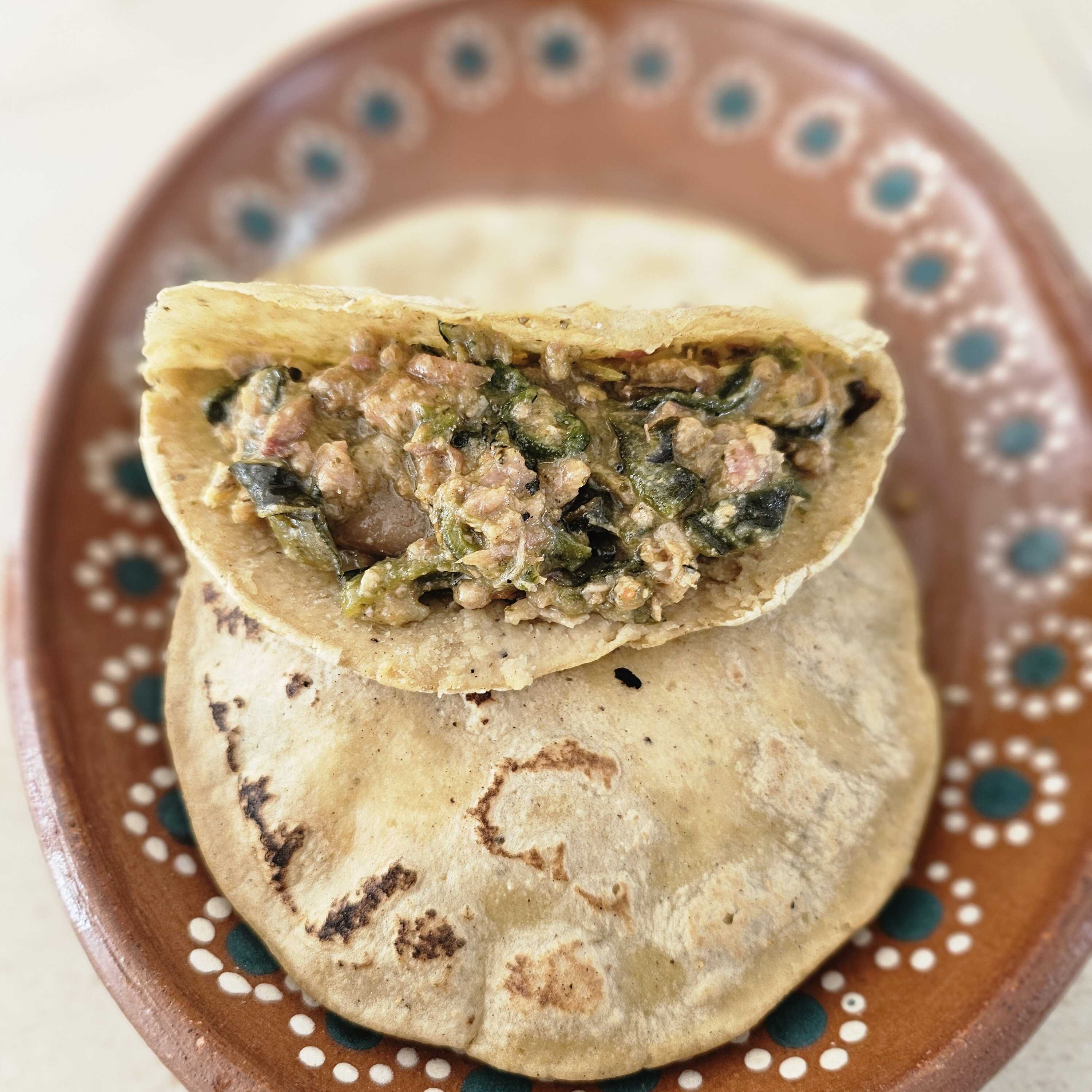 15cm Aprox. Chicharrón de cachete con chile poblano