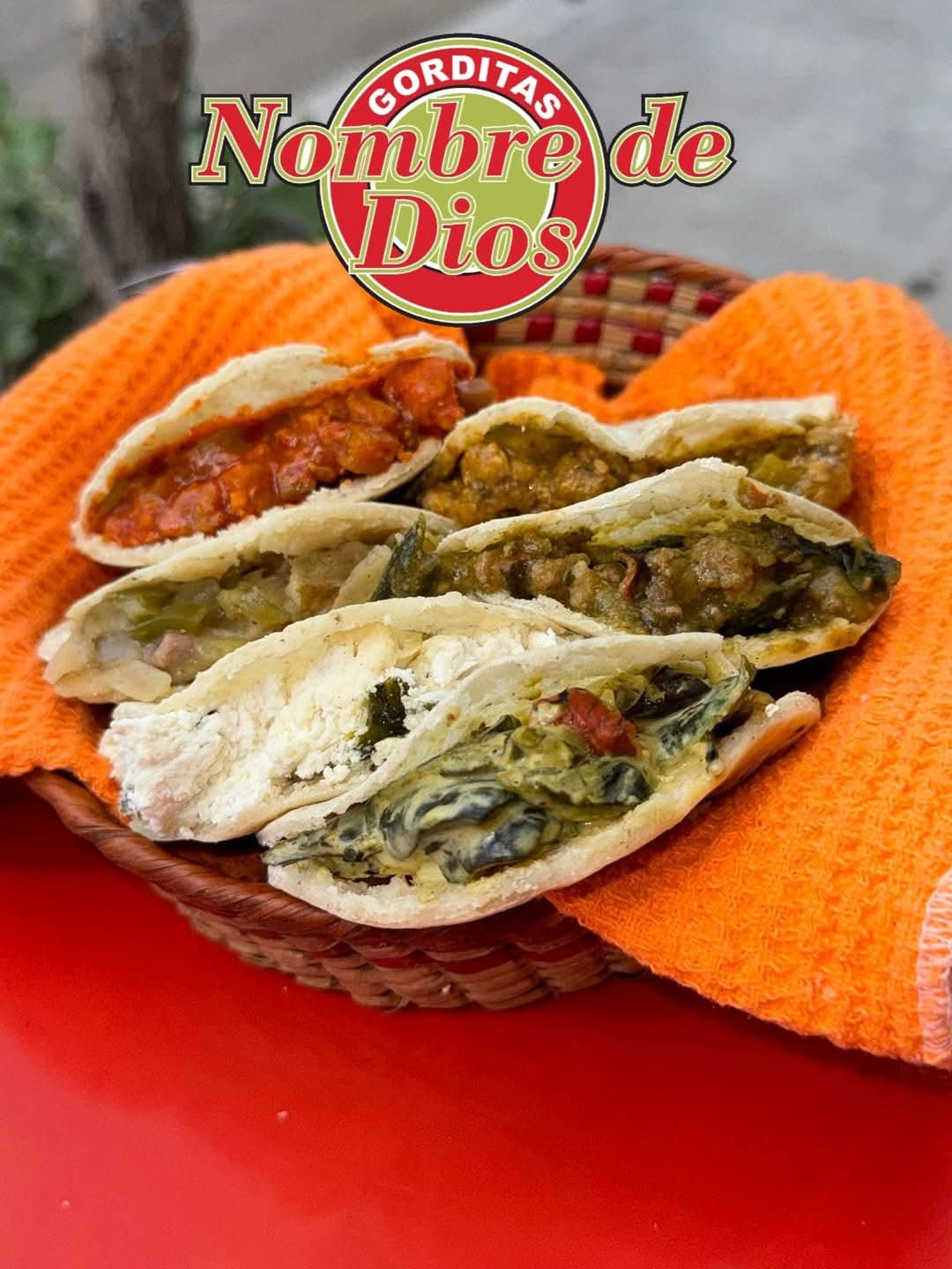 Gordita Grande de 16cm aproximados. con el guiso de tu preferencia como: Deshebrada, prensado, asado verde, asado rojo, picadillo verde, picadillo rojo, frijoles con queso, huevo verde, papas en salsa verde y queso, nopales con huevo, requesón con rajas, Discada, rajas con queso, queso.