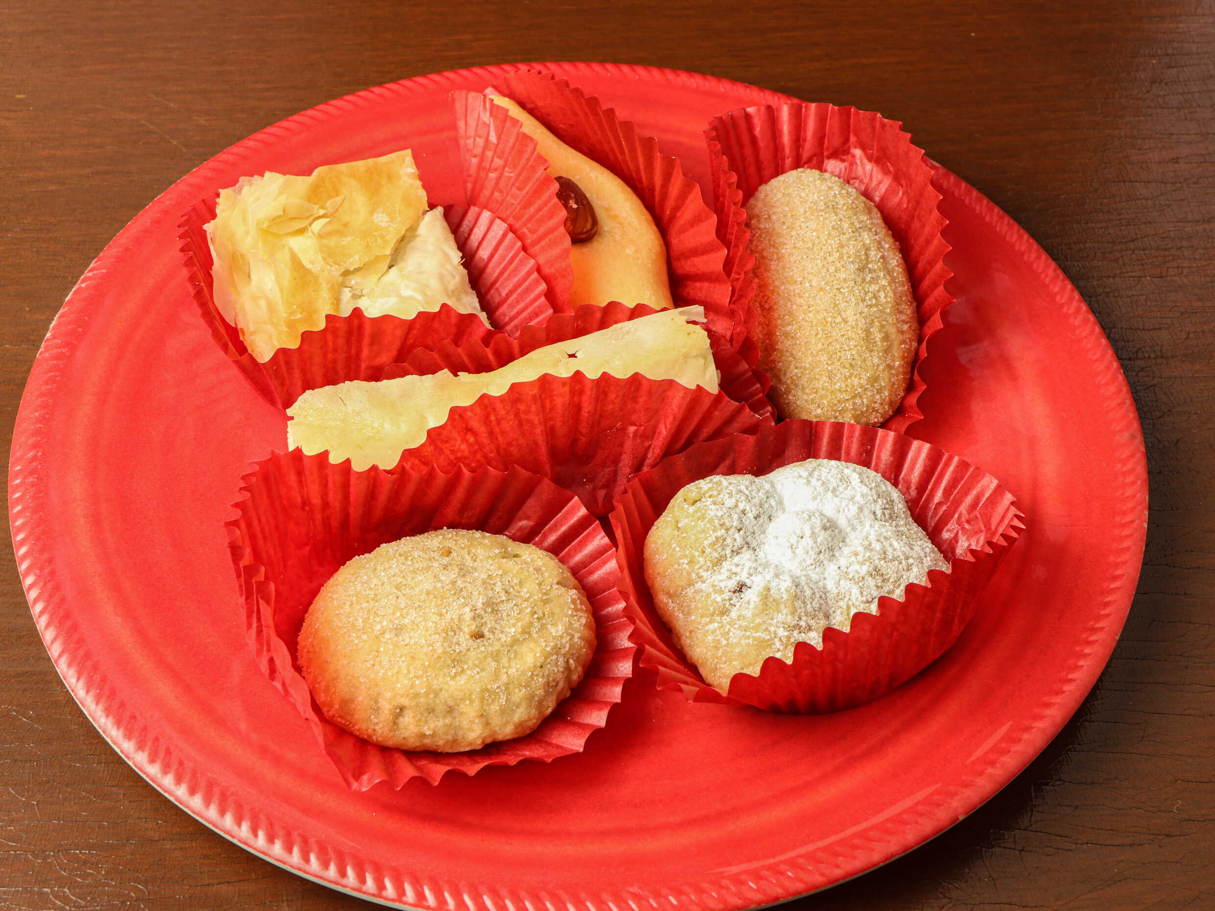 Galleta de sémola de trigo, rellena de dátil, almendra o nuez.