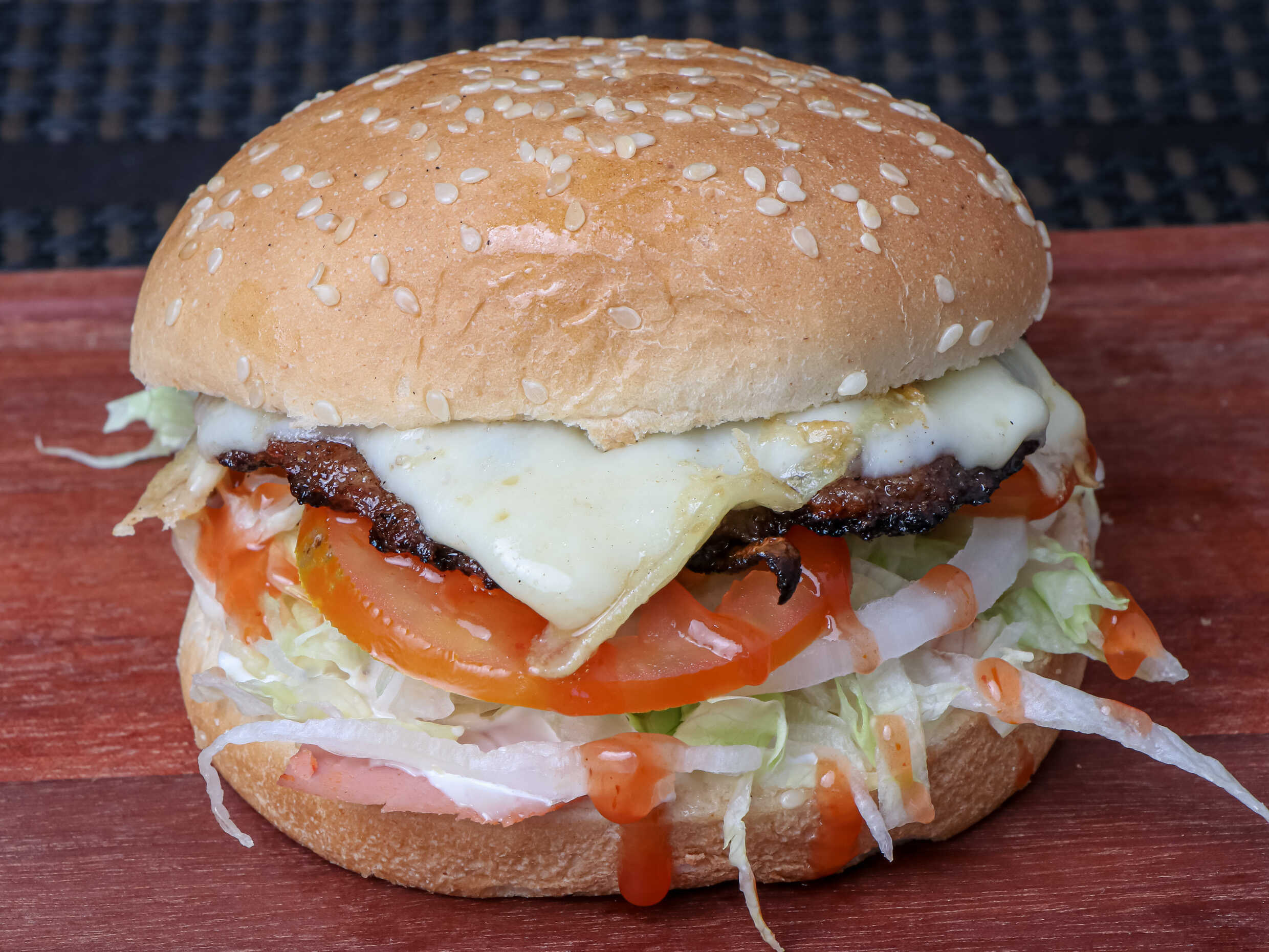 120 gr. de carne de res, queso amarillo, tocino, piña, aderezos y salsa BBQ.