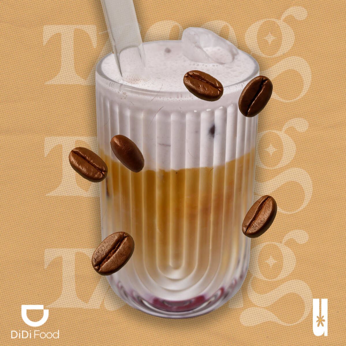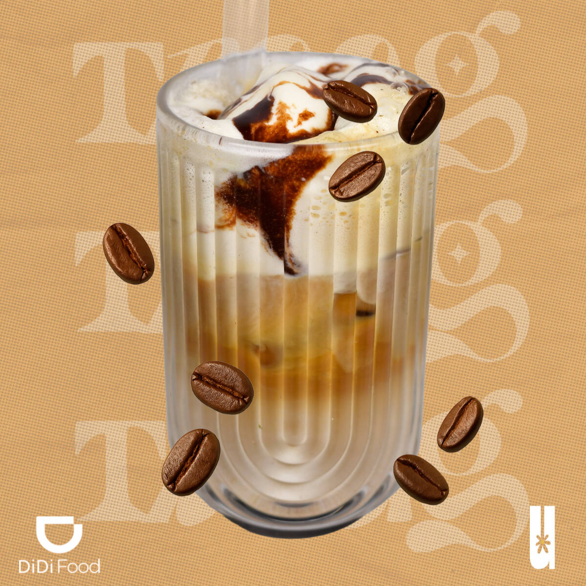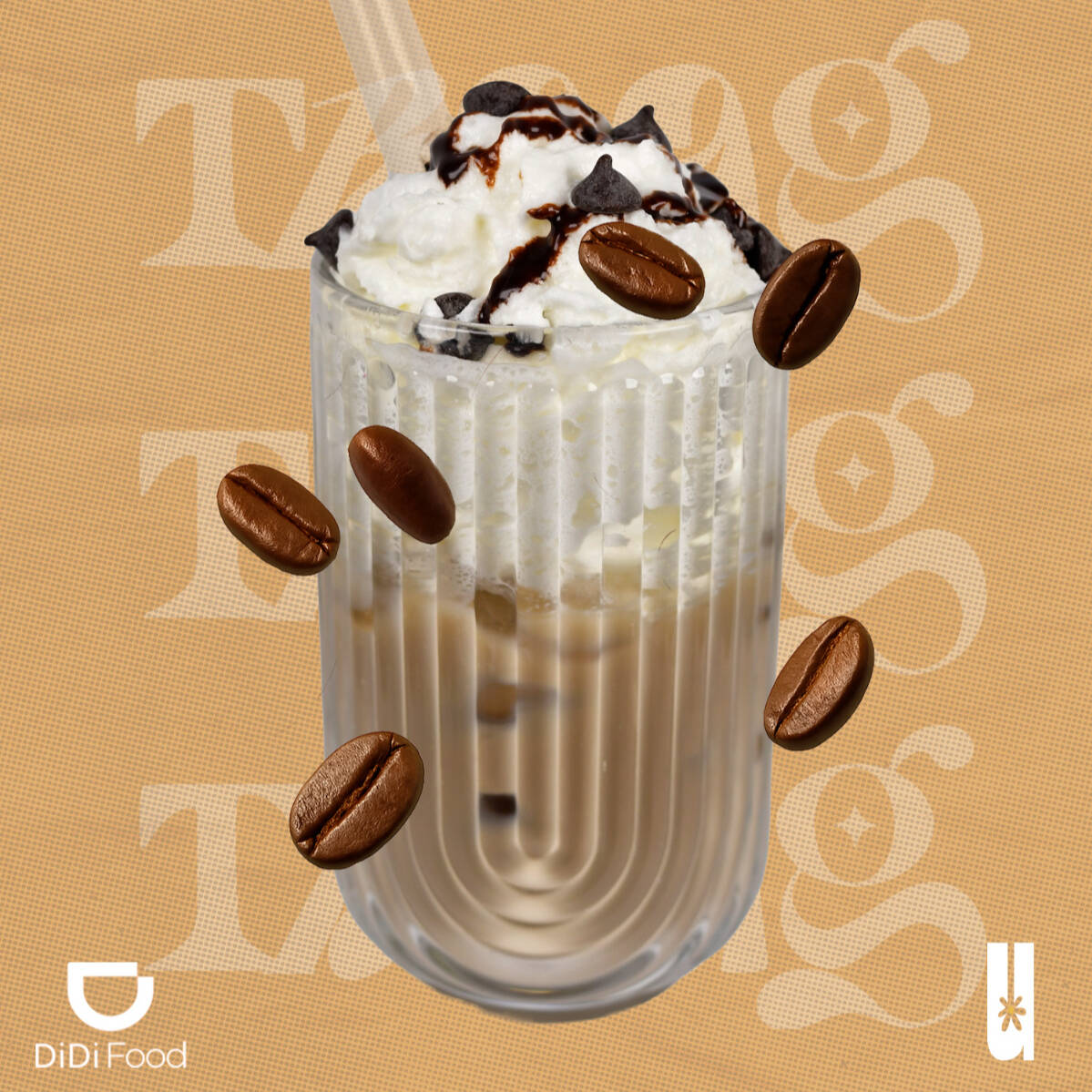 Chai, Leche, Esencia de Vainillla, Shot de Café y Nieve de Vainilla