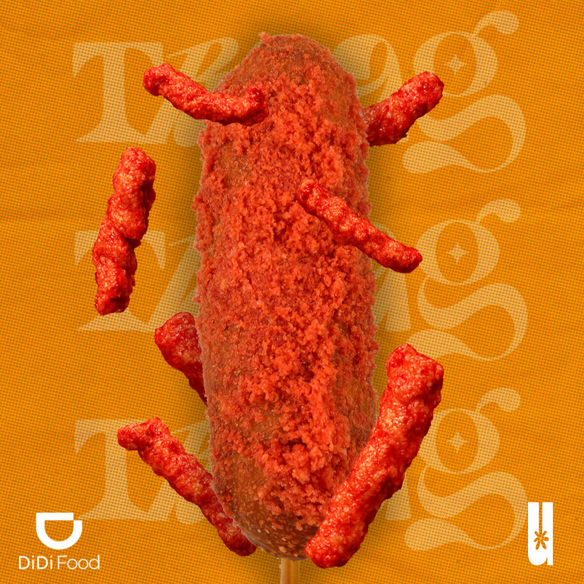 Snack tradicional callejero coreano hecho con mas suave y ligeramente dulce, relleno de tu preferencia, frita hasta quedar dorada y crujiente con cubierta de CHEETOS FLAMIN` HOT