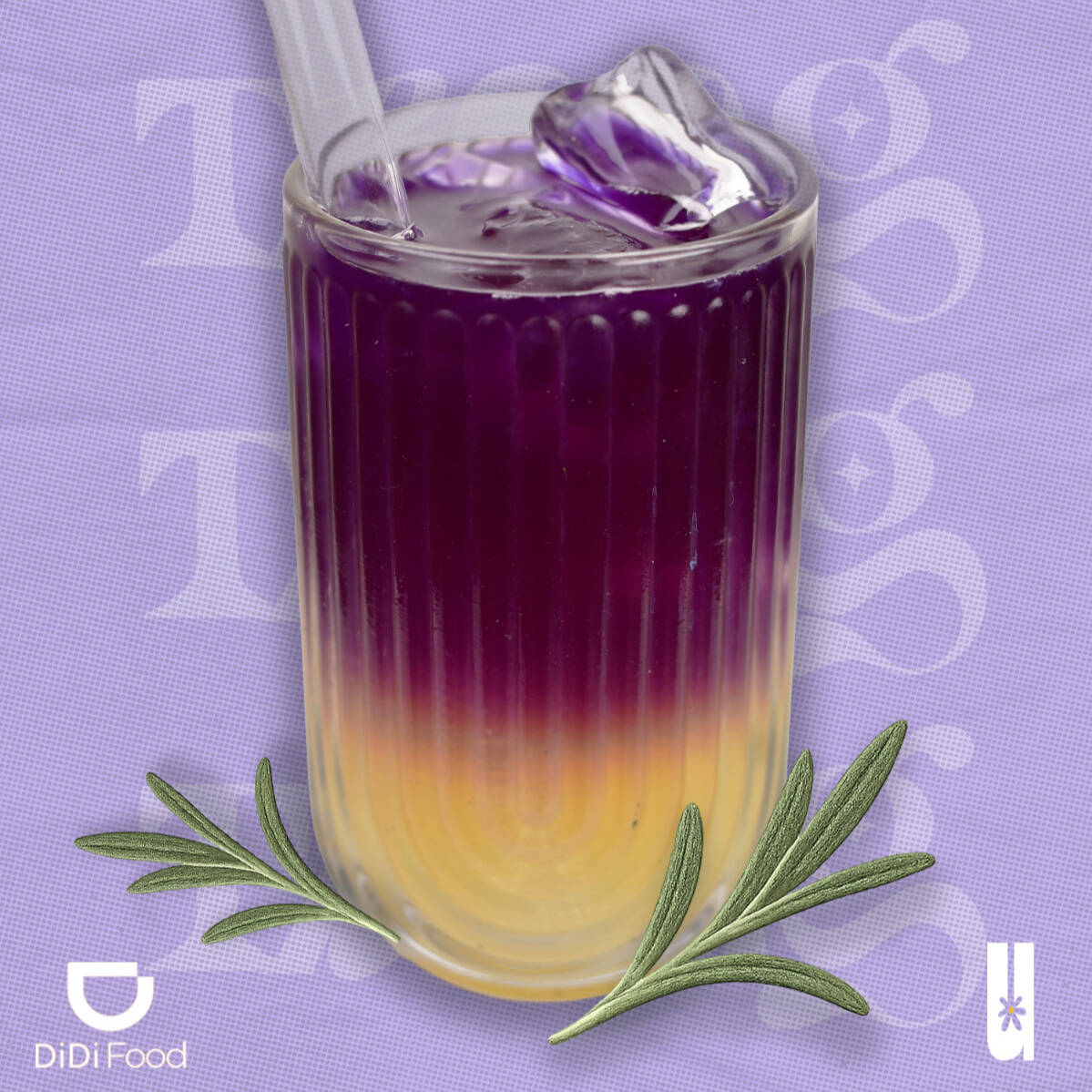 Lavanda, Limon, Sal rosa, San Pellegrino de menta y Butterfly Pea Tea