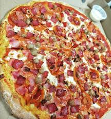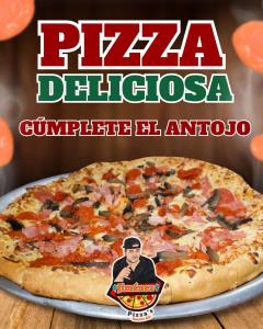 Ingredientes, pepperoni, jamón, tocino, champiñones y chilorio.
