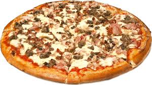 Ingredientes, pepperoni, jamón, tocino, champiñones y chilorio.