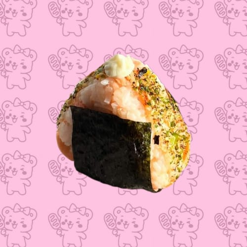 Delicioso onigiri de arroz relleno de atún con mayonesa y un toque picosito