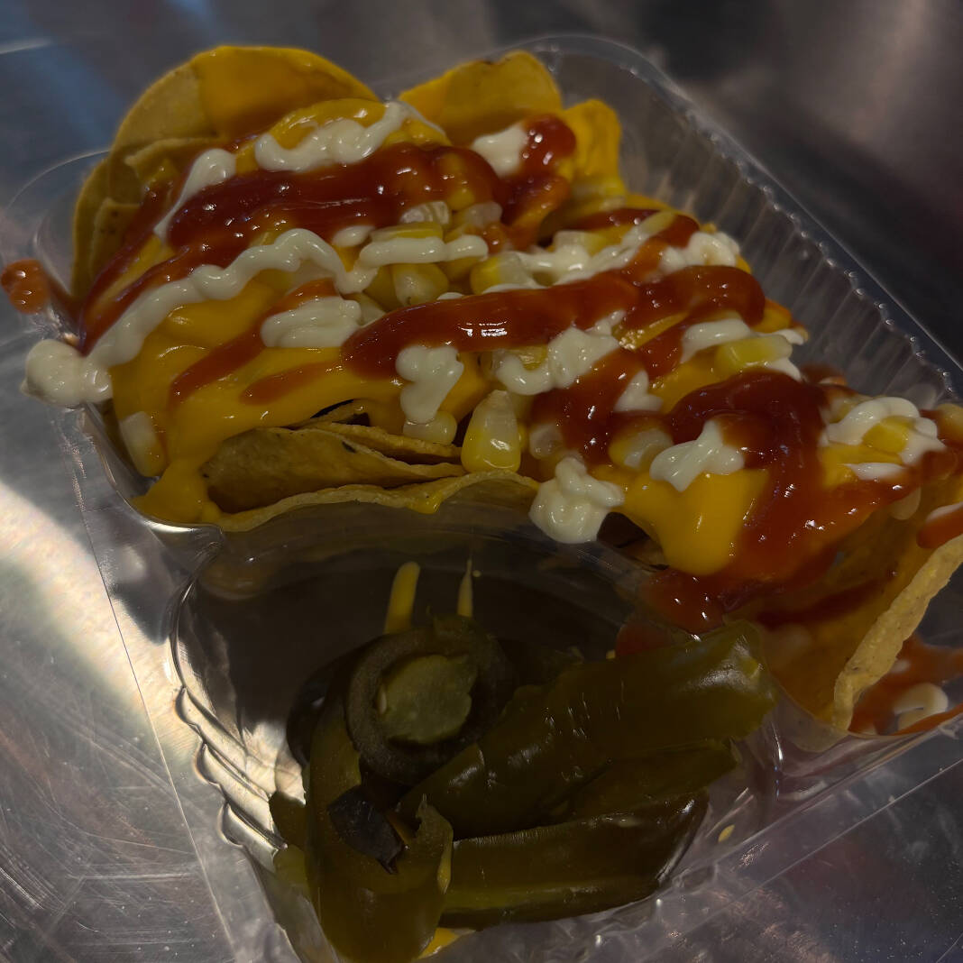 Papa, salsas, cacahuates, pepino, jícama, salchicha, cueritos, clamato, rielitos y gomita