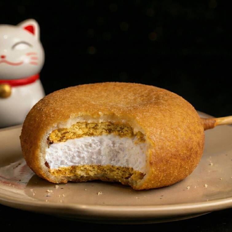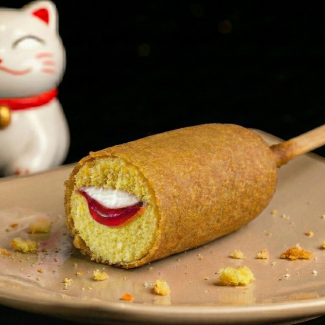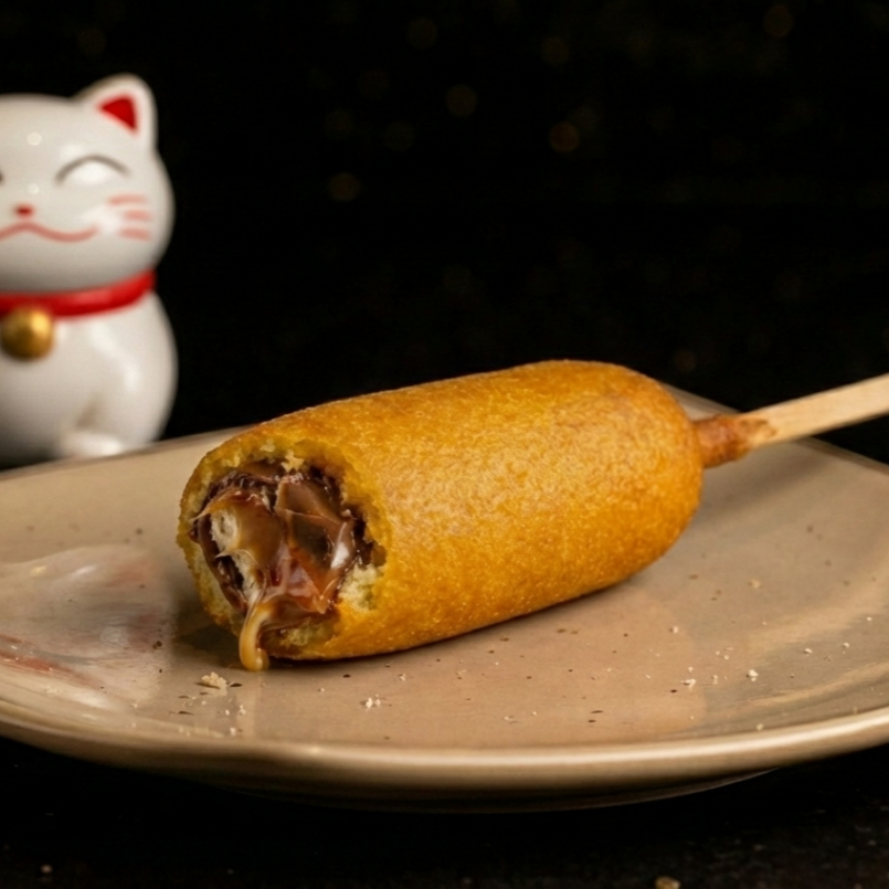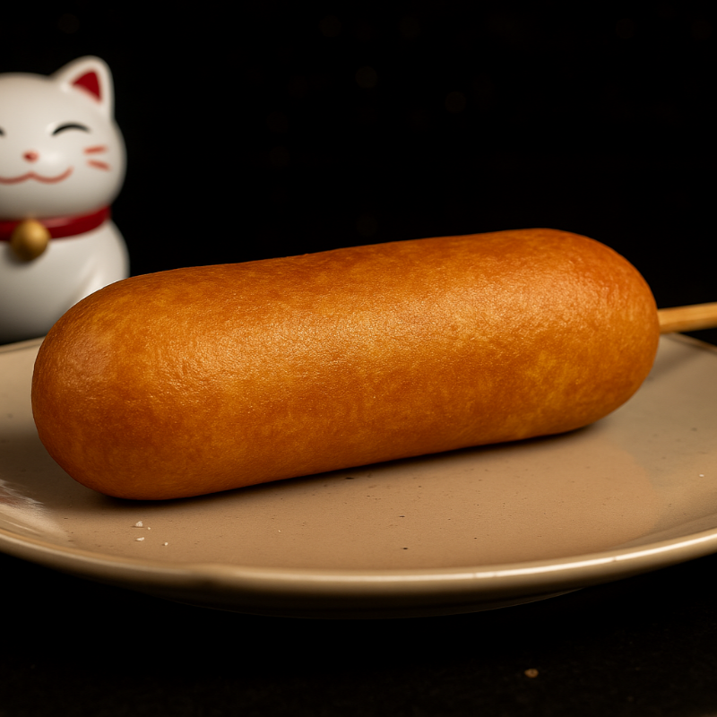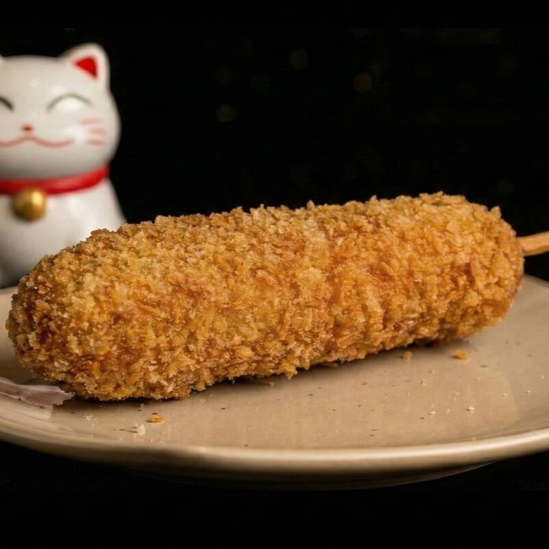 Banderilla crujiente cubierta con ramen dorado, con una textura única y un sabor irresistible en cada bocado