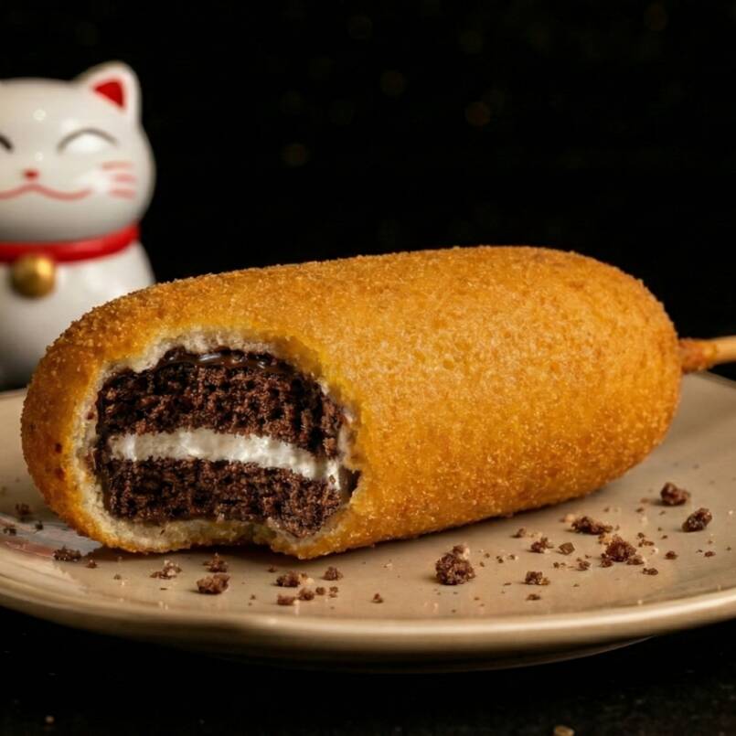 Milky Way original cubierta con masa dulce y frita al punto perfecto. Su interior suave y chocolatado se disfruta en cada mordida, convirtiéndola en un antojo dulce irresistible.