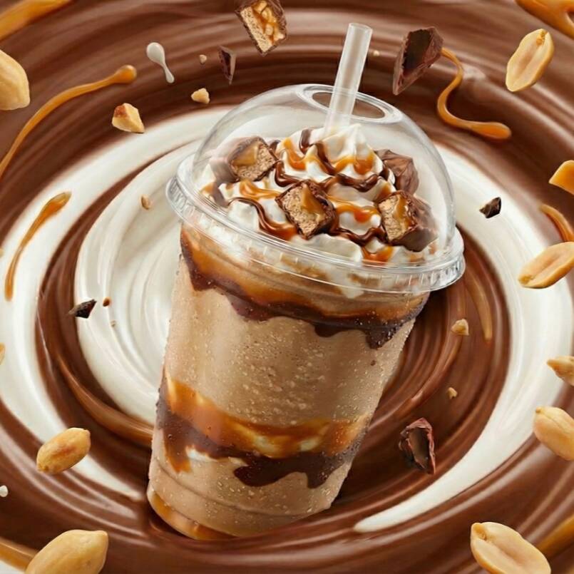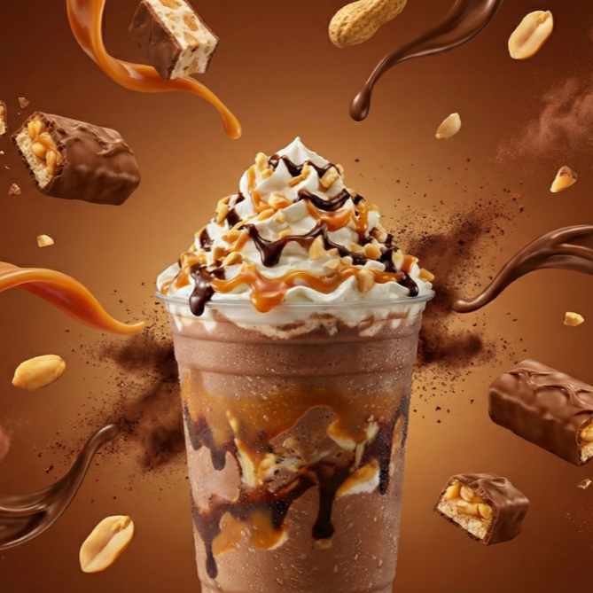Snickers Shake cremoso y bien frío, con ese sabor irresistible a chocolate, cacahuate y caramelo que encanta a cualquiera.