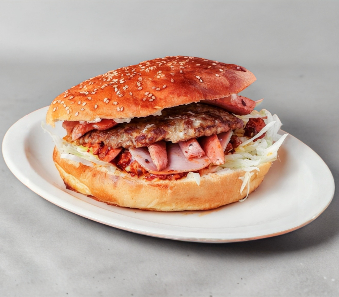 2 Carnes de Hamburguesa, 2 quesos, 2 Salchichas