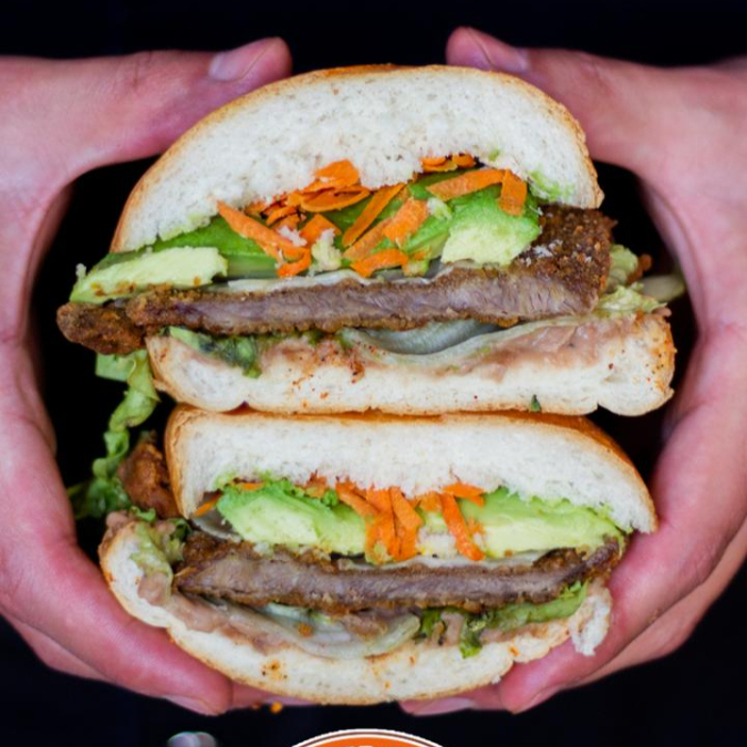 Milanesa de res empanizada sobre base de frijoles refritos, con queso Chihuahua, aguacate, lechuga hidropónica y zanahoria. Incluye papas y aderezo.