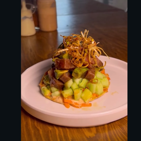 Tostada de atún fresco