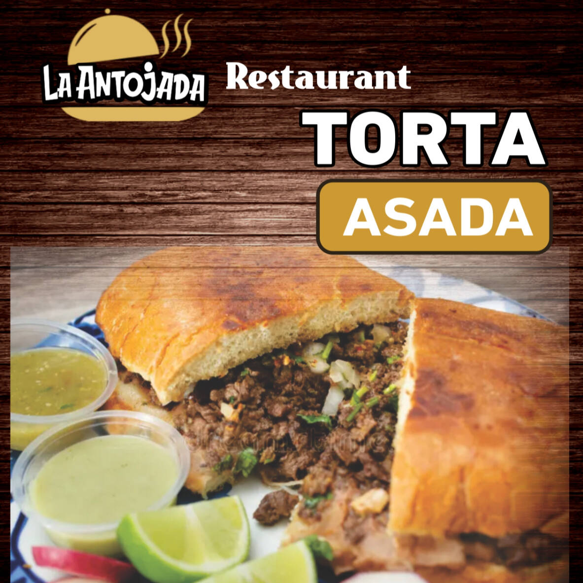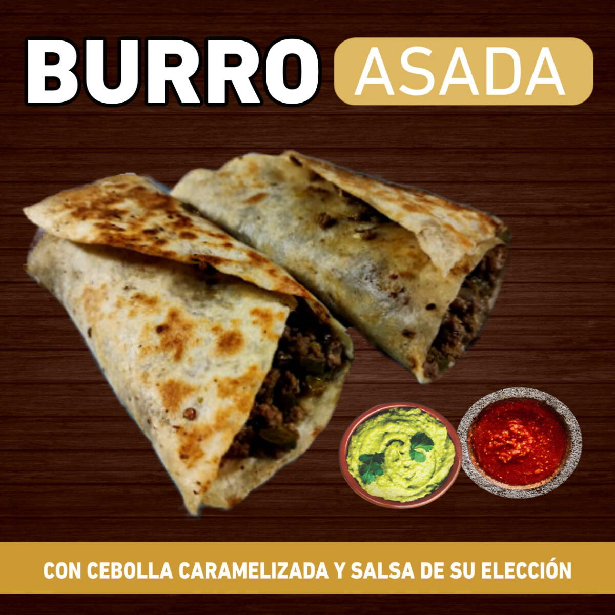 Carne asada marinada, cebolla caramelizada, salsa verde y mayonesa.