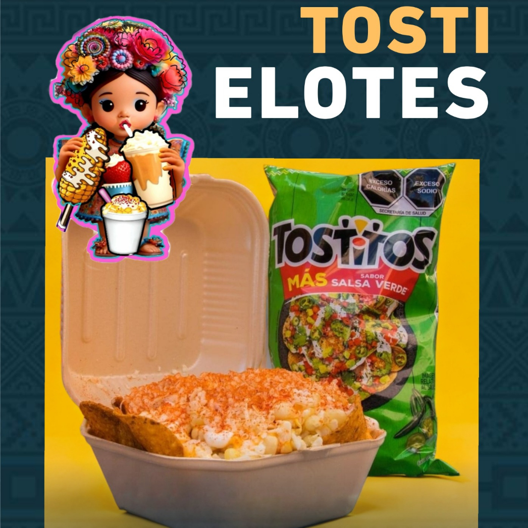La genialidad esta en la interaccion: tomas un tostito firme, lo usas como cuchara para tomar una porcion generosa de elote cremoso (con mantequilla, mayonesa, crema, queso y chile en polvo pegado a los granos), y lo llevas a la boca en un solo movimiento.