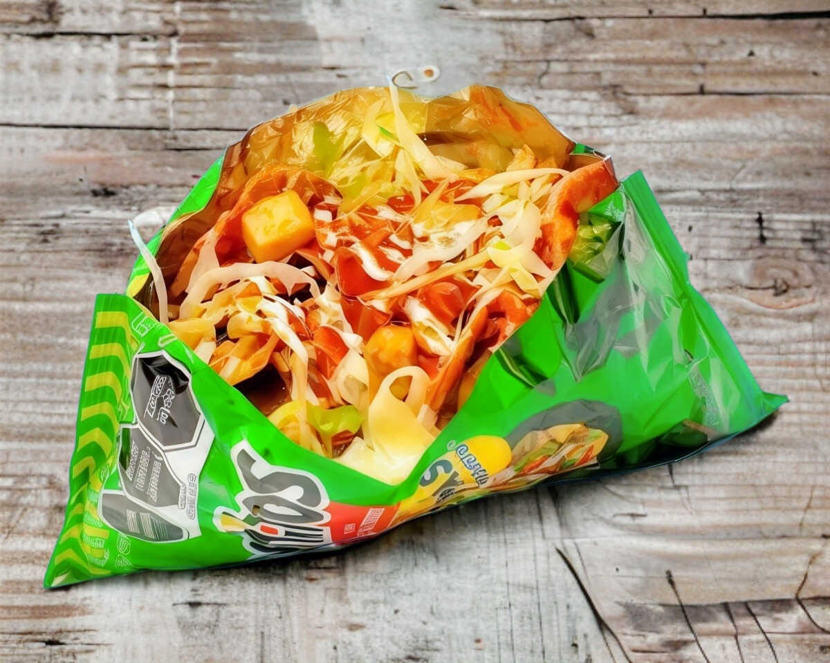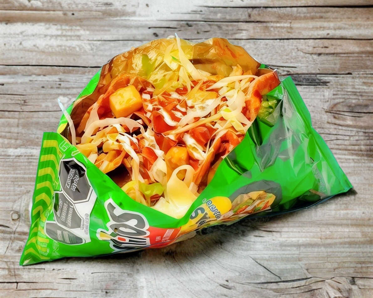 Dos Bolsas De Tostitos Preparados Con Lechuga Pepino Jicama Cueros Cacahuates 2 Rielitos Limon Maggie Crema Salsa Sal.
