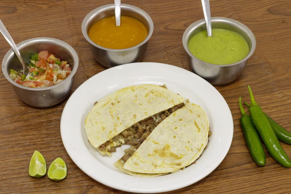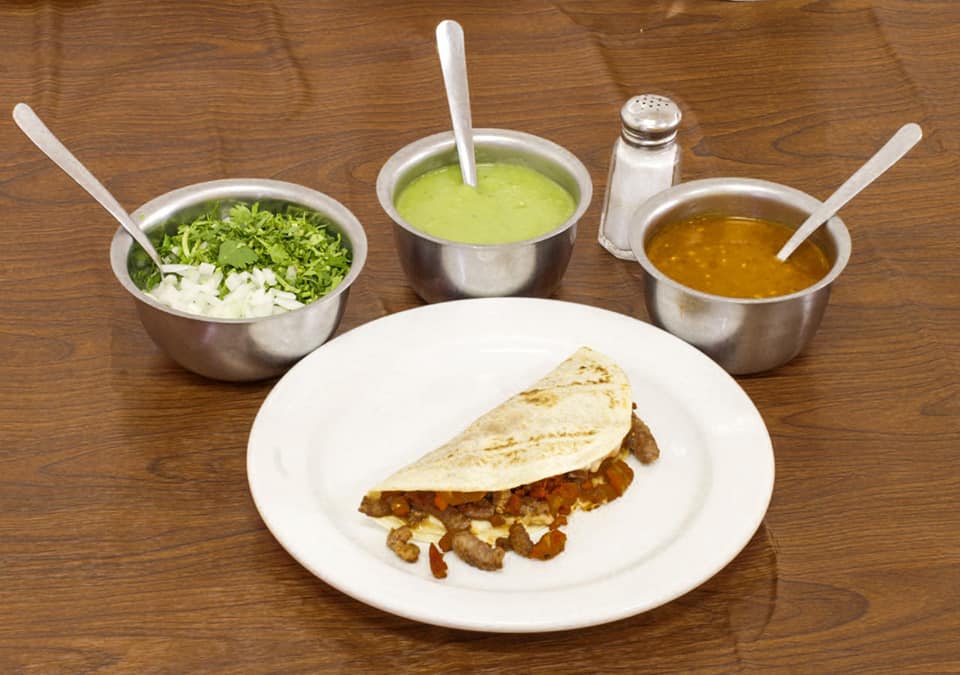 Carne de bistec con 40 tortillas; incluye salsas y verdura.