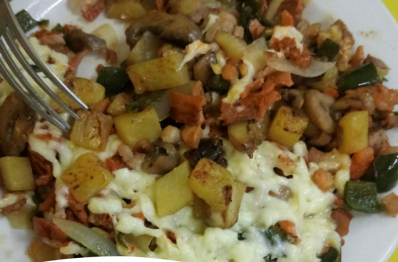 Combinación de nopales, bistec, tocino, tomate, cebolla, chile poblano y queso (10 tortillas).