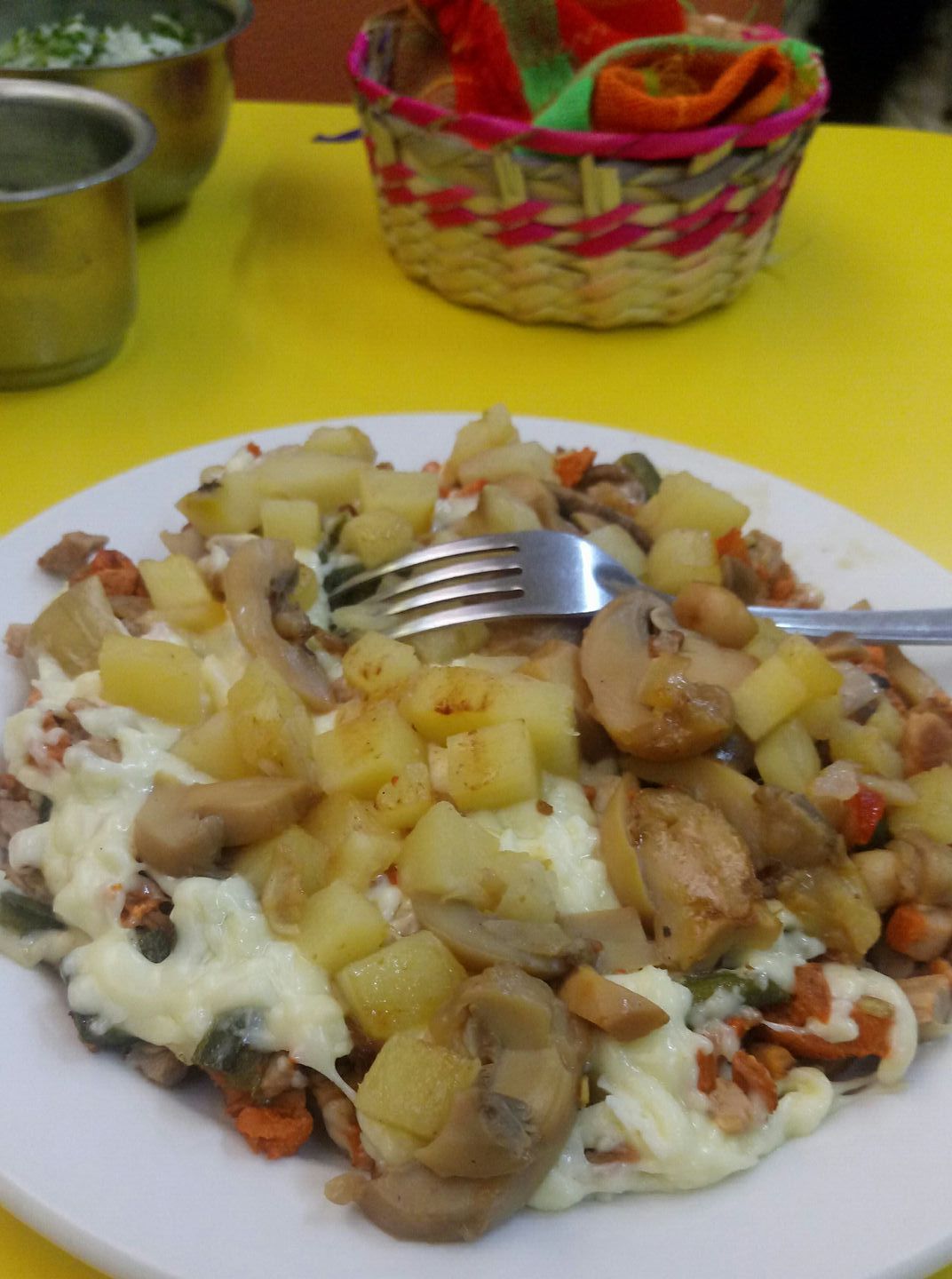 Pollo, tocino, cebolla, chile poblano y queso (10 tortillas).