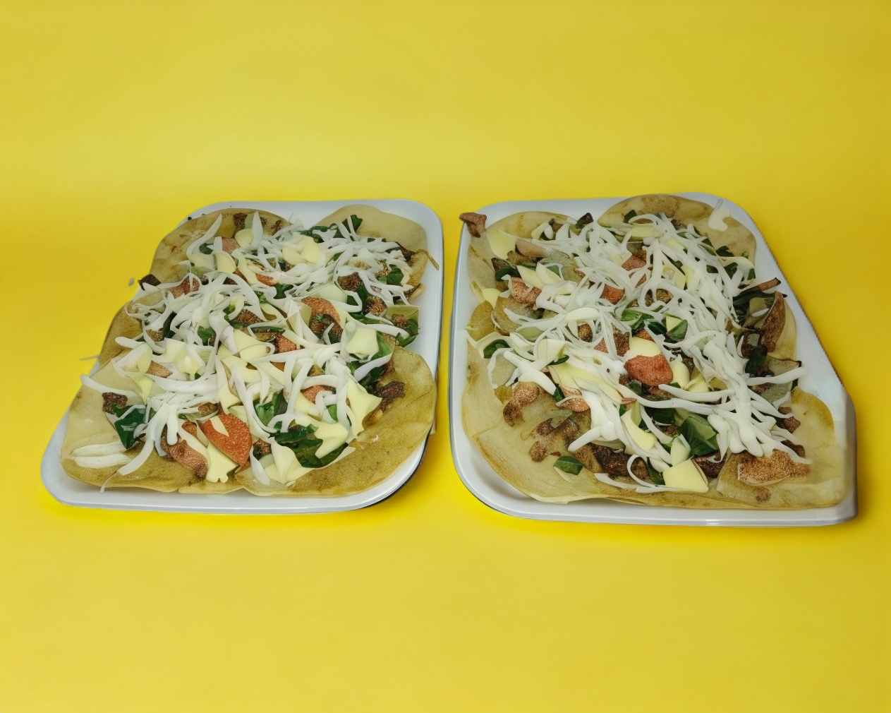 200 g de papas fritas salchichas en rodajas carne al pastor cebollita asada ketchup aderezo y queso amarillo