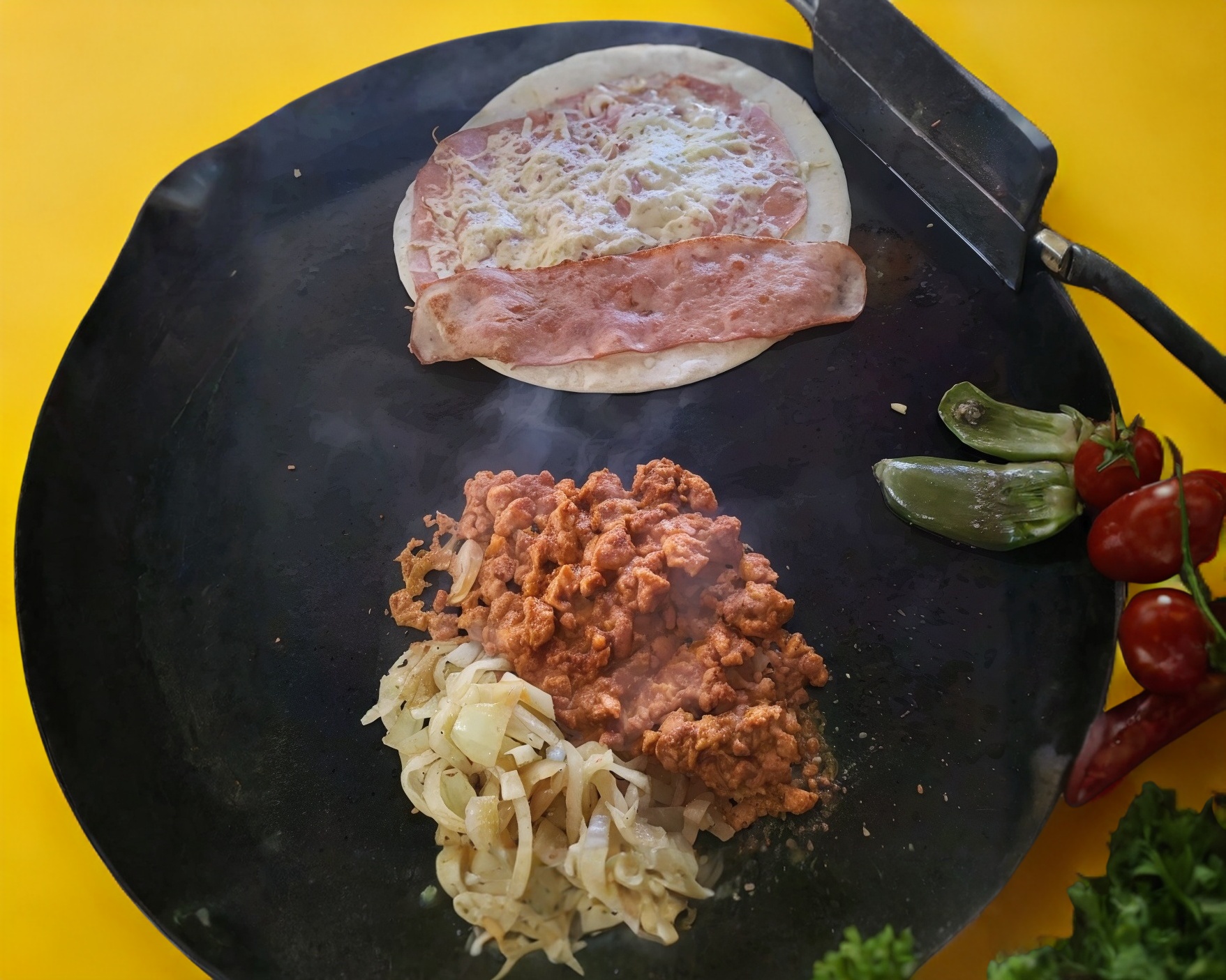Doble carne casera carne al pastor doble salmón amarillo doble queso blanco doble tocino doble salchicha y piña