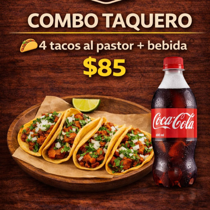 Coca 600 Ml*1 + Tacos al Pastor Tradicionales*1