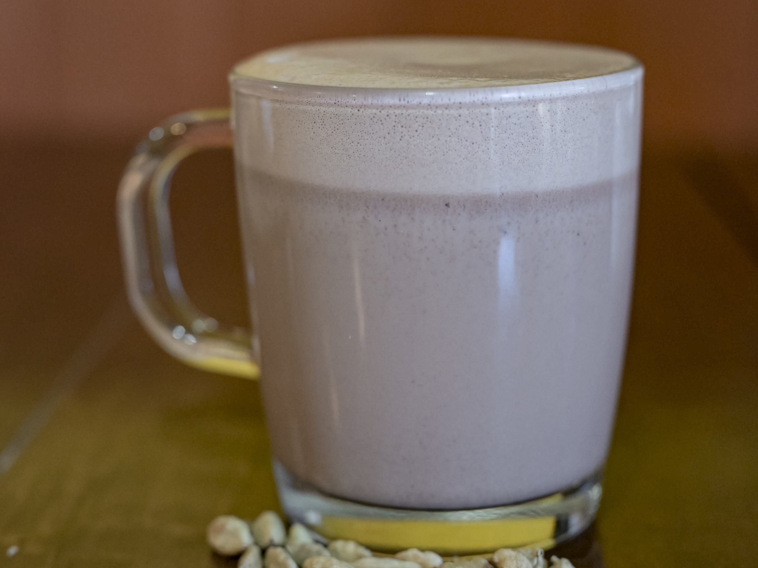 Cacao orgánico 50%, cardamomo. Soconusco, Chiapas. espumado con leche entera y ligeramente endulzado. 12oz.
