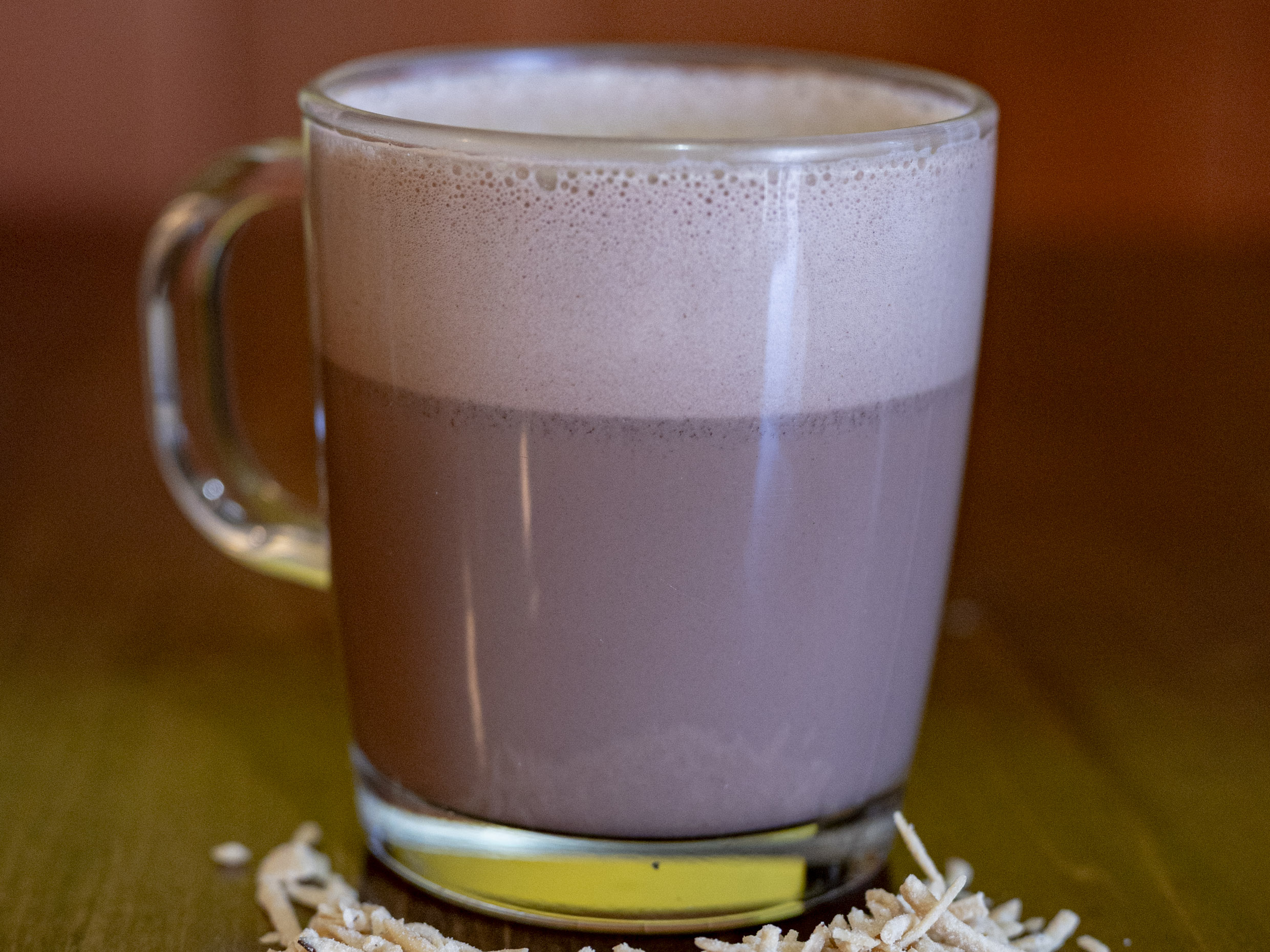 12oz. Leche entera espumada /cacao 50% Naranja, Soconusco Chiapas