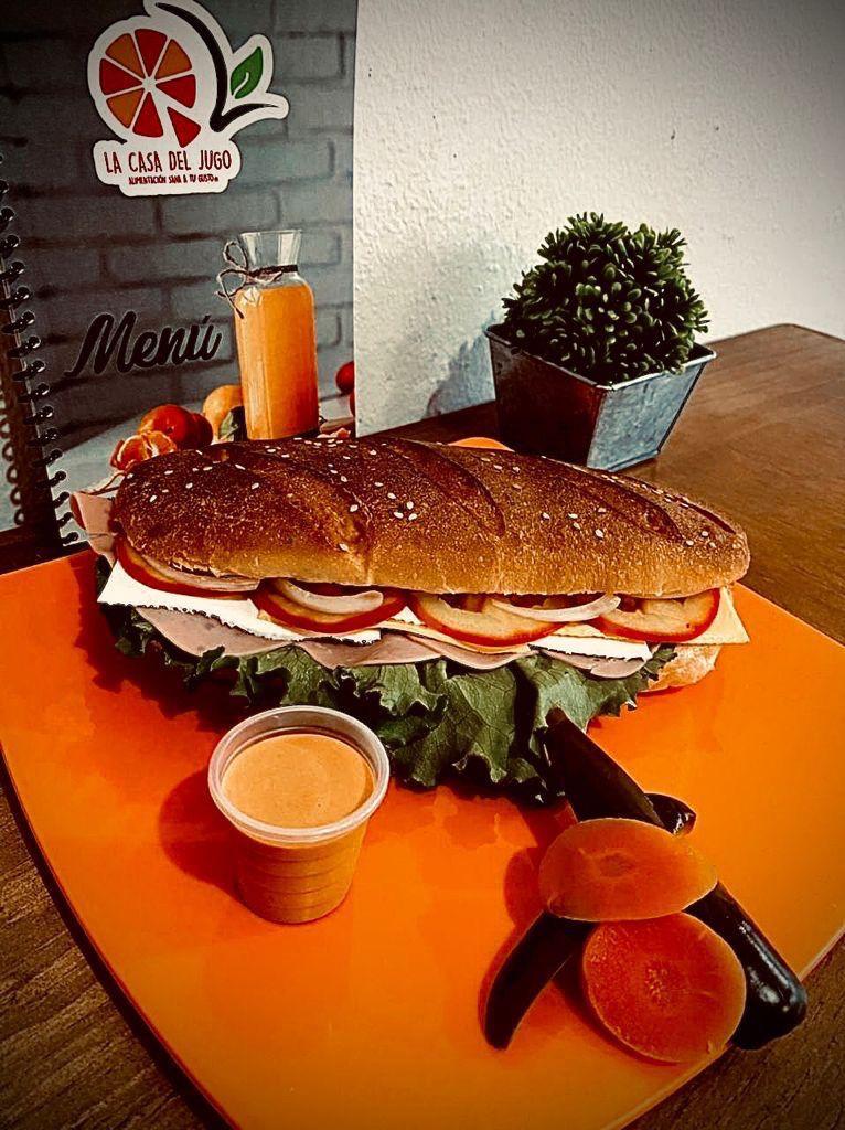 1 Sándwich de jamón, 1 Jugo de Naranja