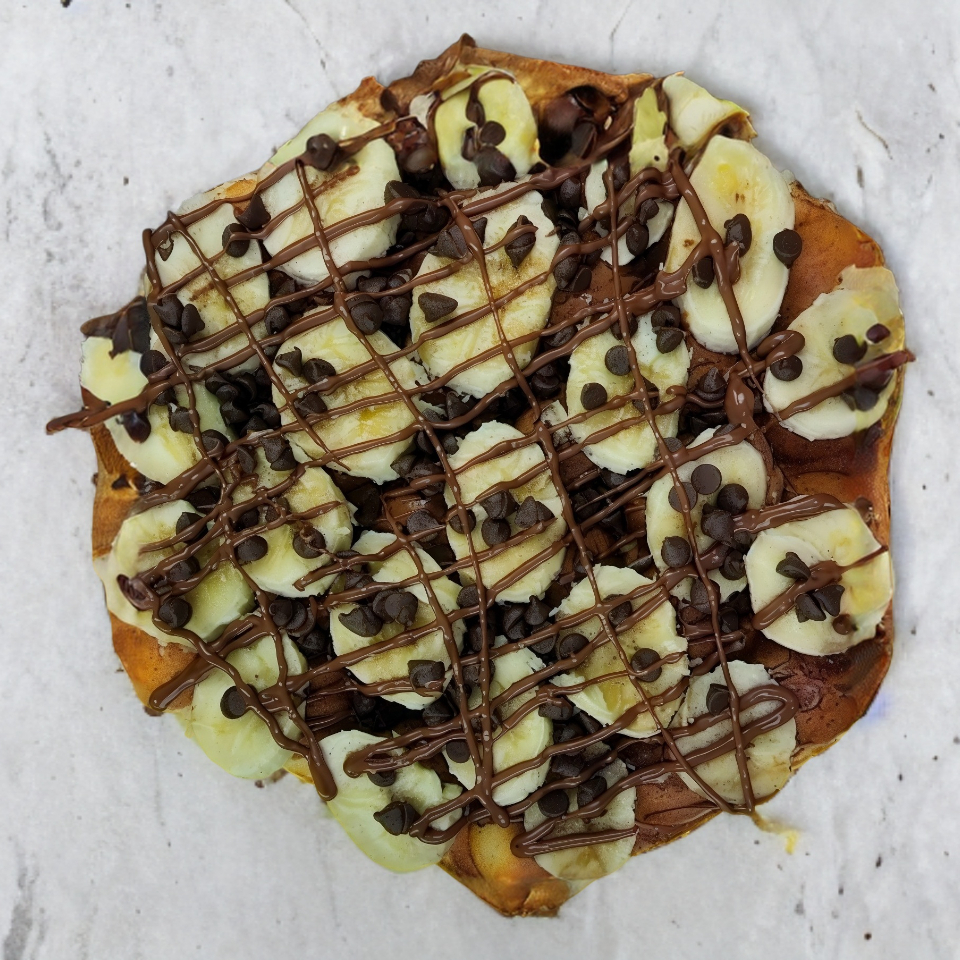 Chispas de chocolate, Chocorrol, crema batida y Nutella.