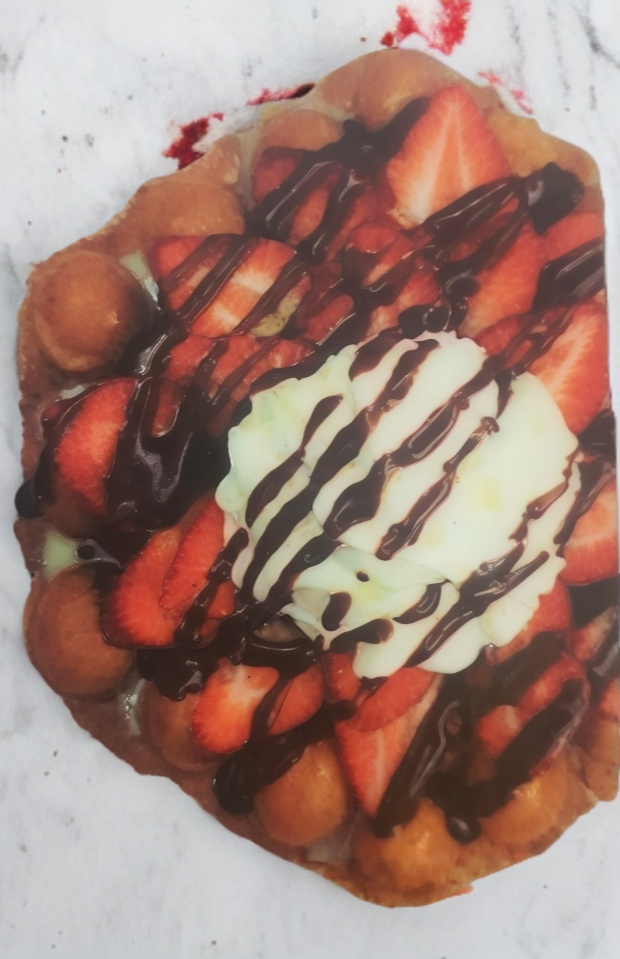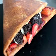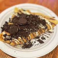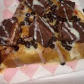 crepa con kinder delice. crema batida, chispas de chocolate y nutella