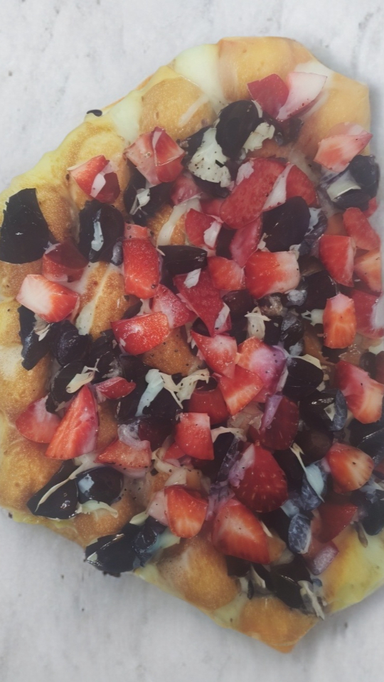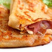 Crepa con Salsa de tomate, queso manchego y piña en cuadritos