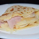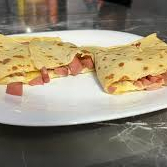 Crepa con Jamon. salchicha y tocino, bañada en crema chipotle