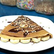 Crepa con chocorrol, crema batida, chispas de chocolate y nutella