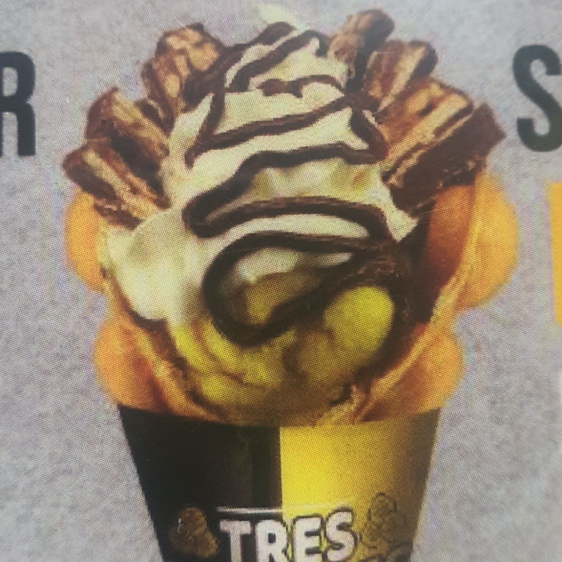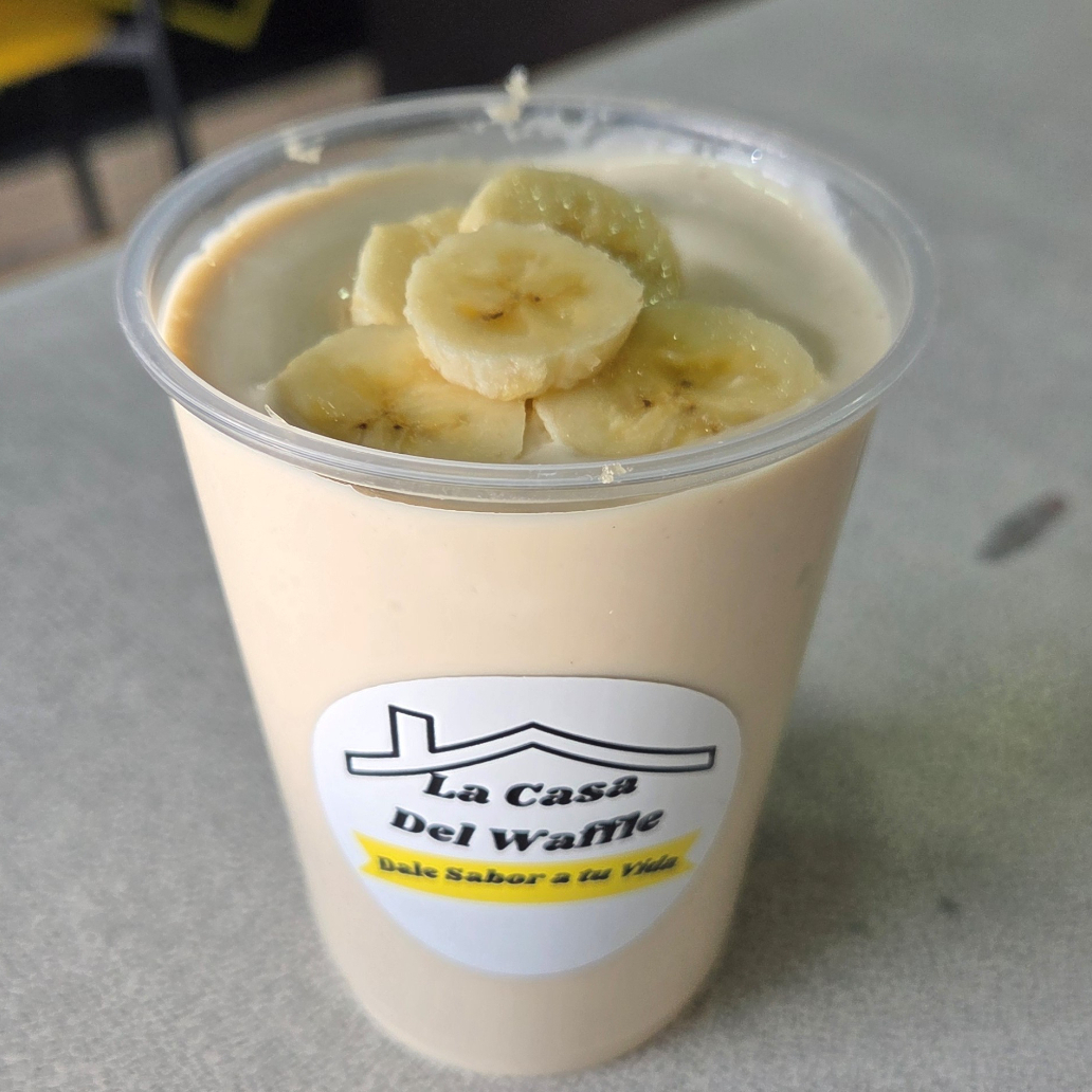 Helado de vainilla, plátano, cacahuate, chispas de chocolate y dulce de leche.