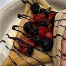 Crepa con frutos rojos, lechera, nuez y chocolate Hersheys liquido
