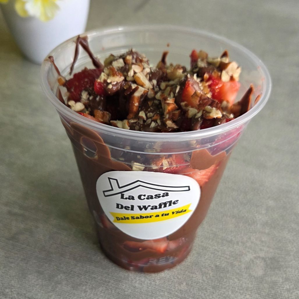 Frambuesas, moras, blue berries, nuez, Lechera y Hershey's líquido.