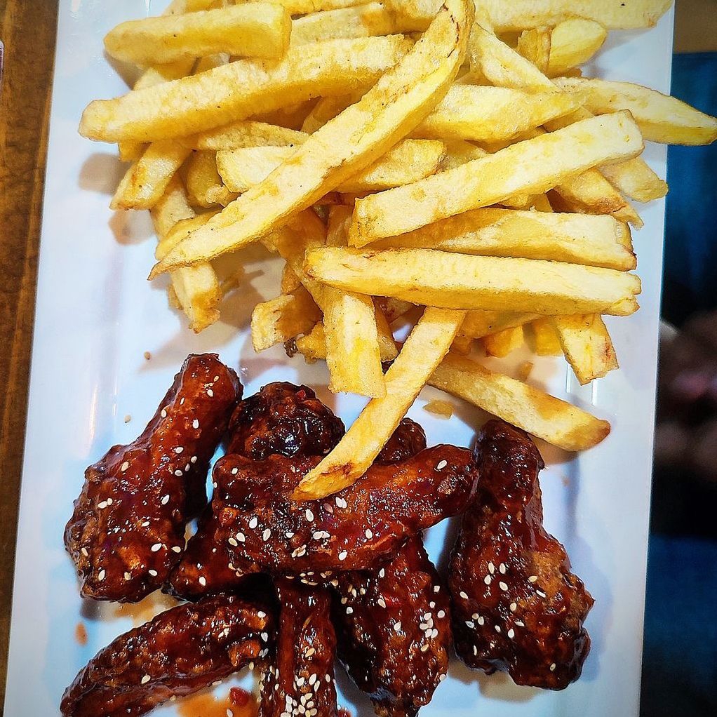 Alitas y papas fritas