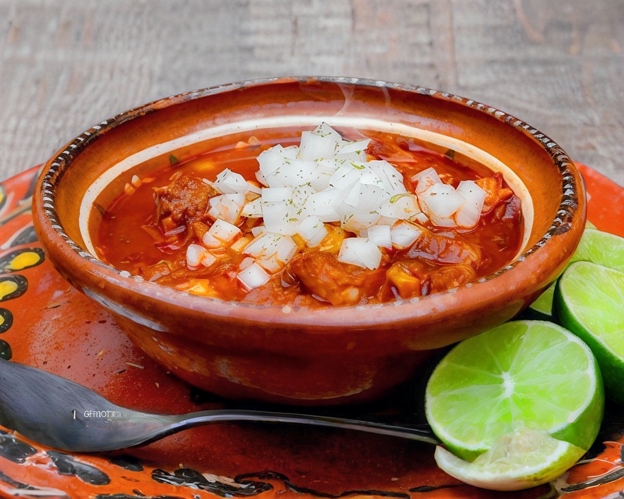 El delicioso menudo rojo de La Chamana, el mejor de la ciudad!!! se envía en recipiente térmico de 1Lt. acompañado de limón, orégano, chile quebrado y tortillas.