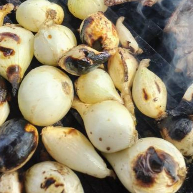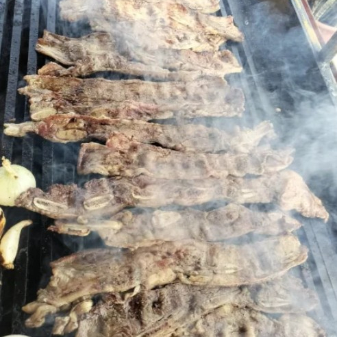 Orden de costilla, incluye salsa del día, tortillas de maíz, cebollitas, y chiles toreados.