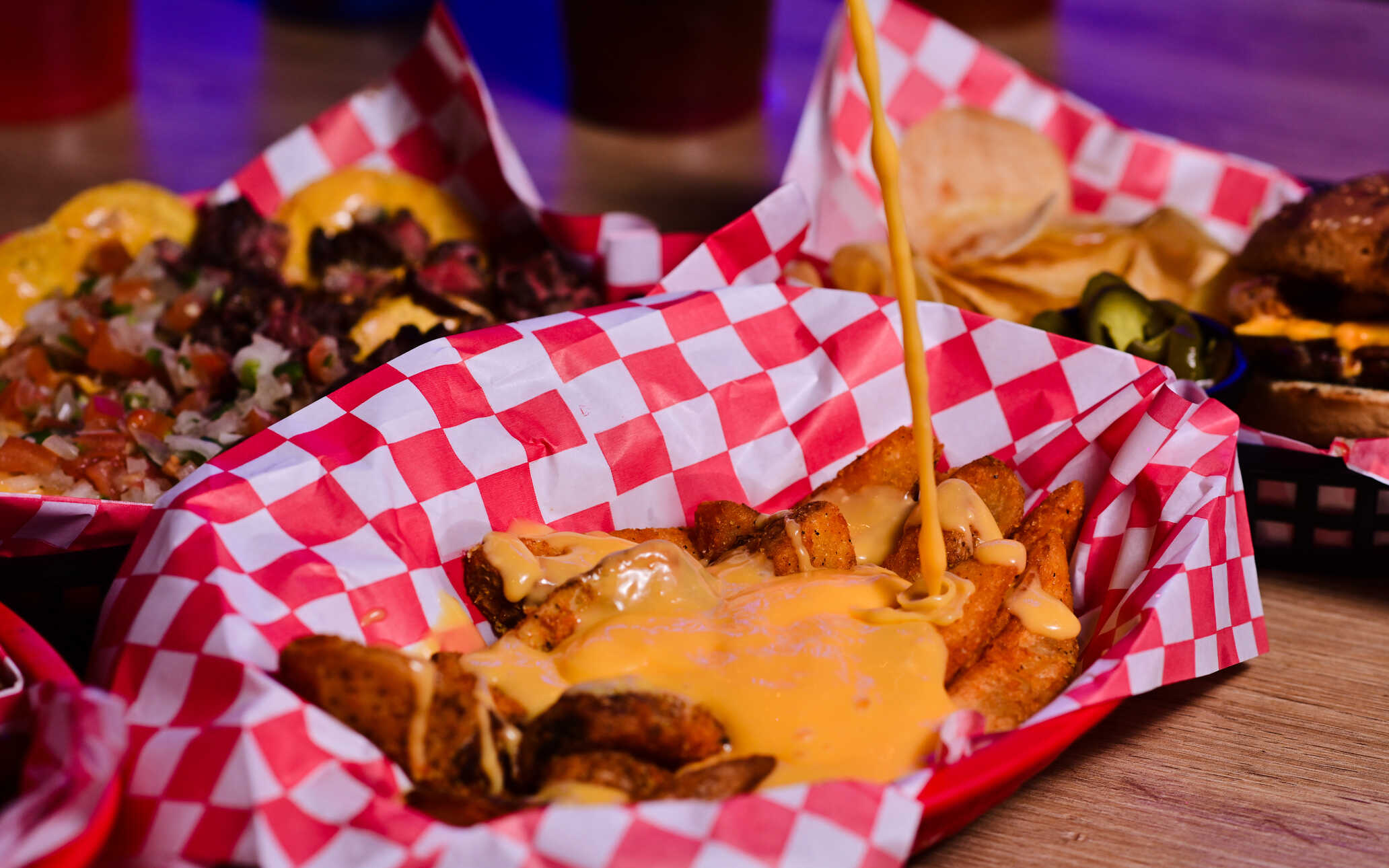 180 g De Arrachera en fajitas, queso amarillo, tocino, pan y aderezos. Incluyen porción de papas botaneras.