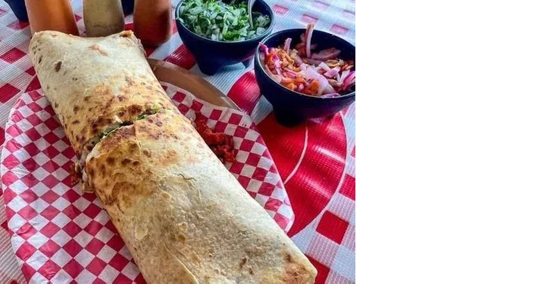 Delicioso Burrito con 100 gr de Arrachera, Salchicha para Asar, queso Gratinado y Aderezos