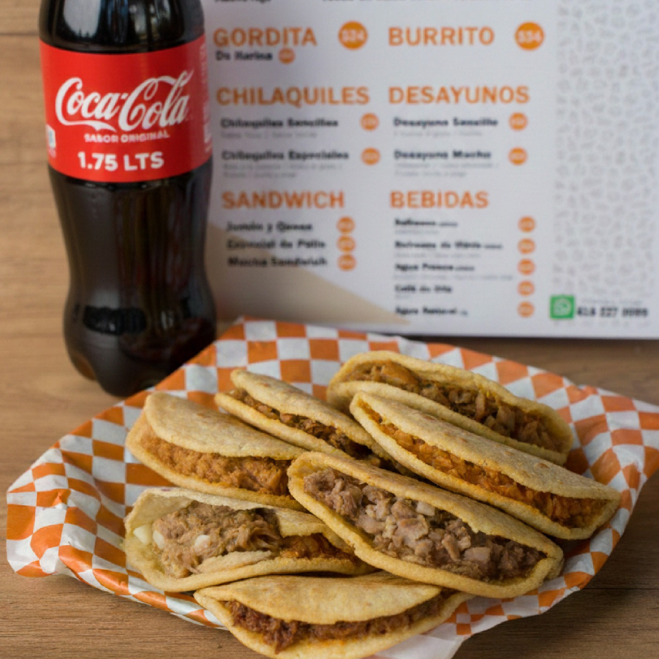 ¡Como deben ser! Gordita de maíz recién hecha, infladita y calientita, rellena generosamente de tu guiso favorito de La Macha. El sabor auténtico de Durango en cada mordida.
