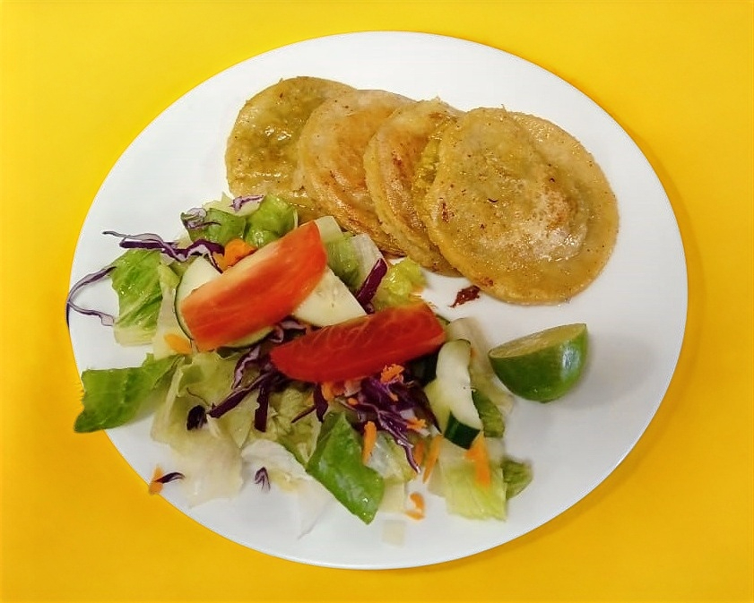 4 Piezas de gorditas pequeñas fritas, acompañadas de ensalada.