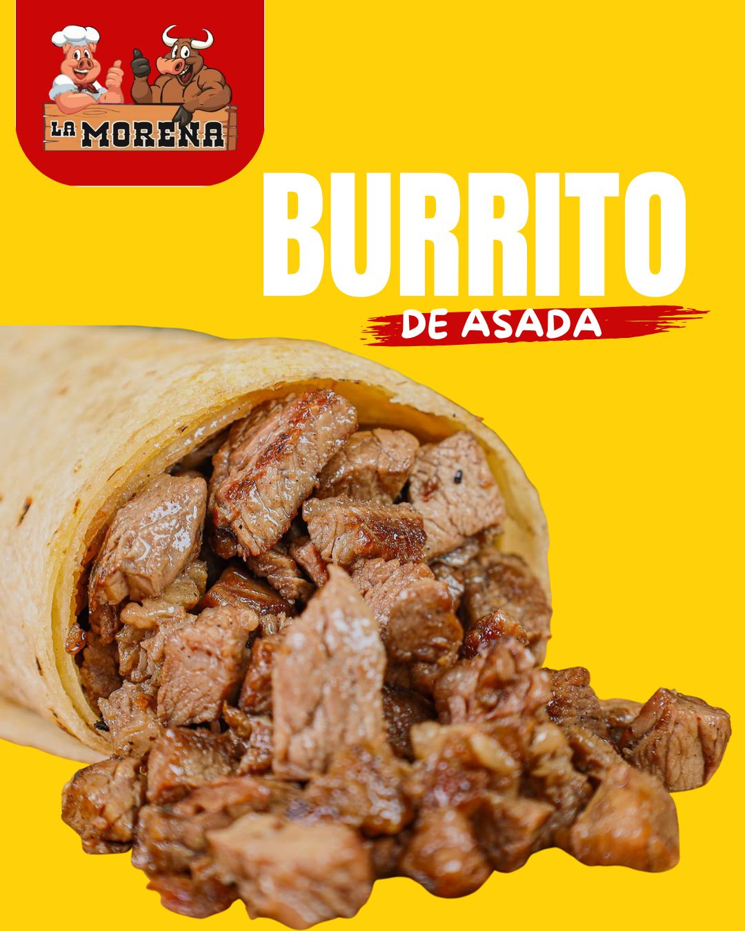 Burrito de Asada : tortilla de harina suave rellena con jugosa carne asada ,sazonada al punto perfecto y doradita en su jugo .