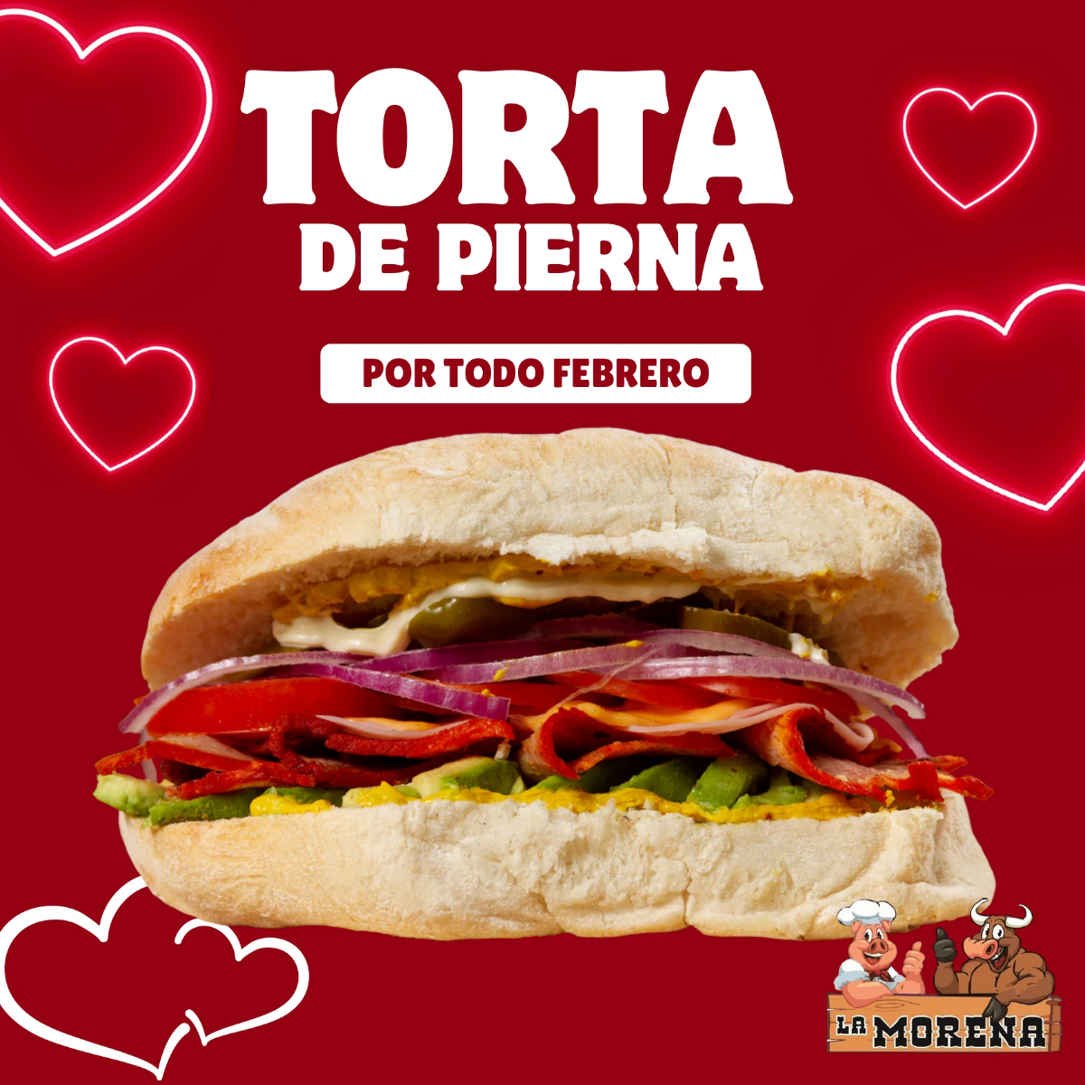 La clásica con un extra pierna adobada bien sazonada ,jamón, aguacate cremoso ,queso fundido ,lechuga fresca, jitomate jugoso ,cebolla ,chiles en vinagre y el toque irresistible de mayonesa y mostaza .