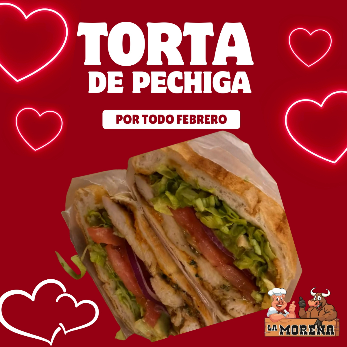 Torta de pechuga empanizada doradita y crujiente con costra de queso fundido ,jitomate ,cebolla ,chiles en vinagre .Acompañada del toque de mayonesa mostaza y un poco de sal para realzar el sabor .Una delicia que no te puedes perder .
