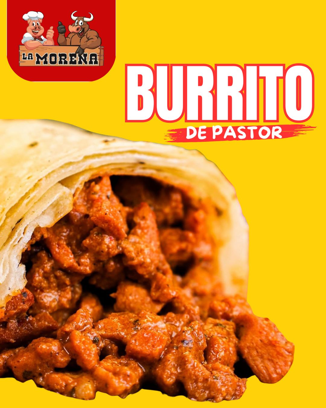 Burrito de Pastor :tortilla de harina calientita rellena con carne de pastor jugosa y bien sazonada con ese saborcito autentico que enamora en cada mordida .