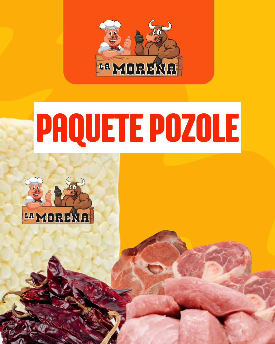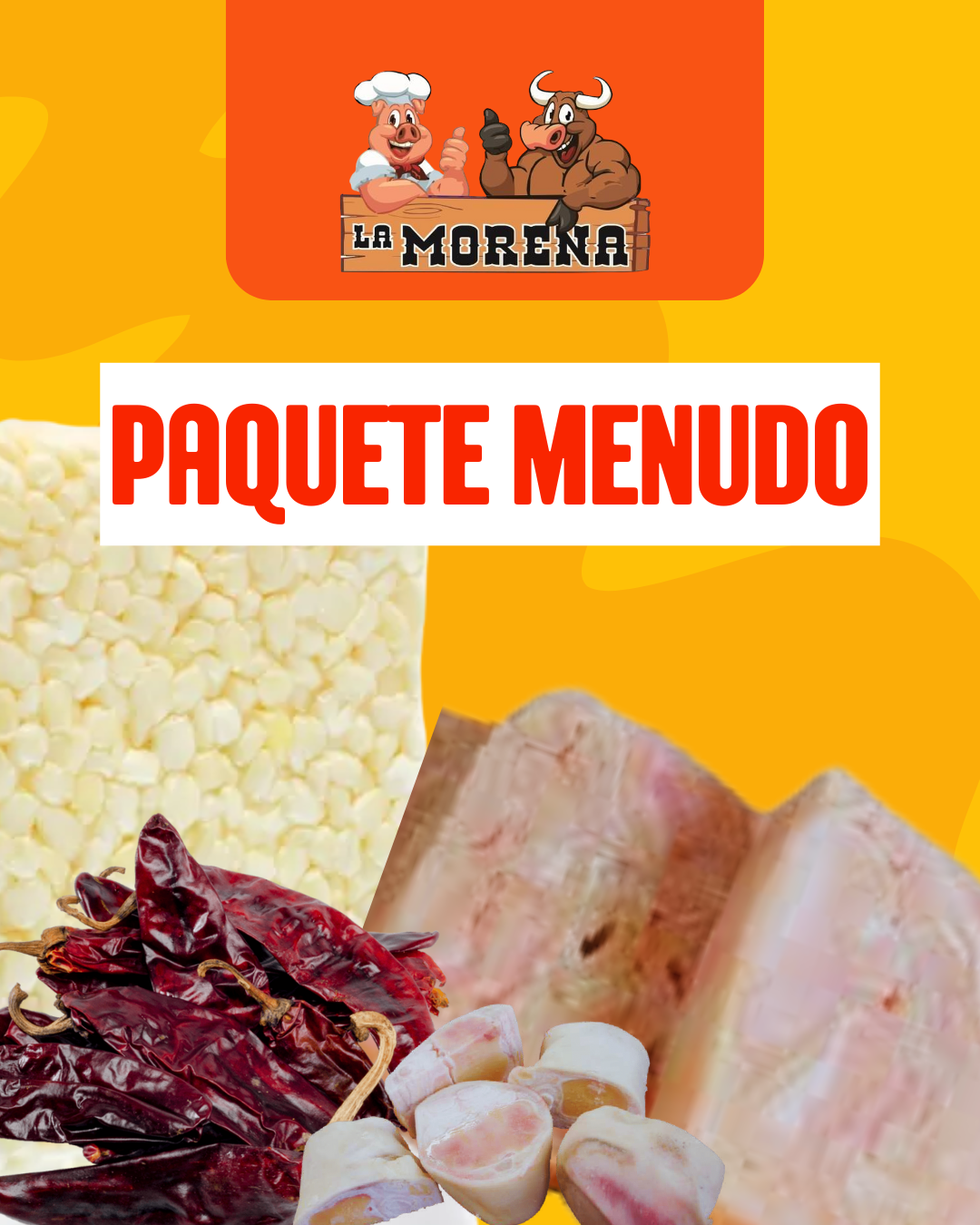 3 Kilos de menudo, 1 kilo de pata de res, 1 kilo de maíz pozolero, 100 gramos de chile puya.